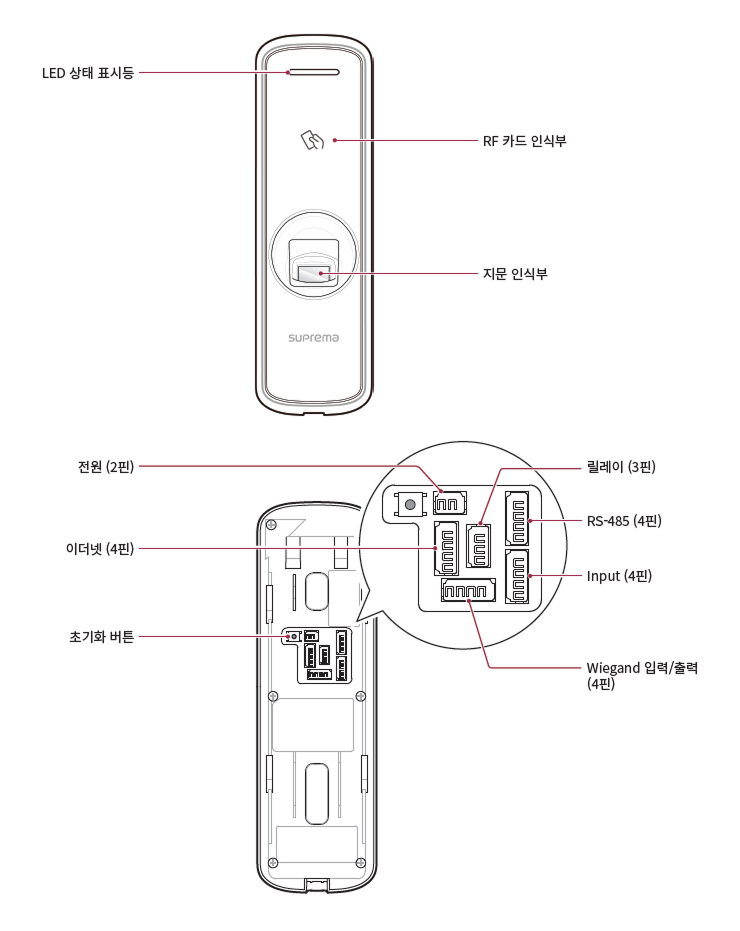 지문 인식부: 출입을 위해 지문을 인식시키는 부분입니다.