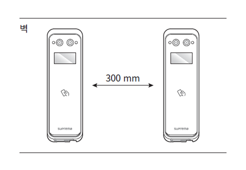 - 모바일 출입카드를 사용할 경우 BLE 신호 간섭을 피하기 위해 장치 사이에 최소 1 m 이상의 거리를 두고 설치하세요.