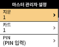 새 장치에서는 최초 부팅 시 마스터 관리자 등록 화면이 나타납니다. 마스터 관리자를 등록하지 않으면 다음 화면으로 이동할 수 없습니다.