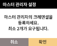 새 장치에서는 처음부터 마스터 관리자를 필수적으로 등록해야하며, 등록하지 않을 경우 장치 사용이 제한됩니다.
