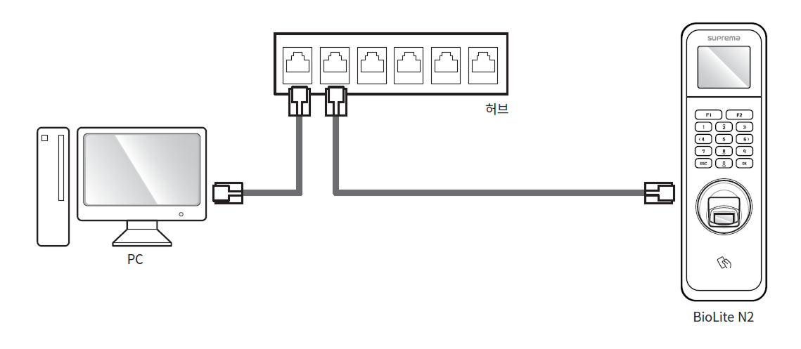 하나의 마스터 장치당 최대 31대의 슬레이브 장치를 연결할 수 있습니다. RS-485 대역폭으로 인해 최대 7대의 지문 인식 장치를 연결할 수 있습니다.