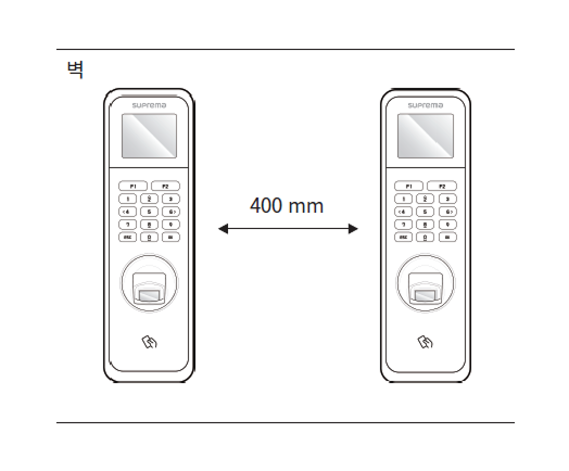 - 모바일 출입카드를 사용할 경우 BLE 신호 간섭을 피하기 위해 장치 사이에 최소 1 m 이상의 거리를 두고 설치하세요.