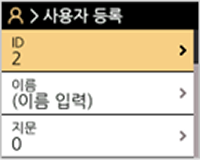 지문: 사용자 인증을 위한 지문을 등록할 수 있습니다. 등록할 손가락의 지문을 스캔한 뒤 동일한 손가락의 지문을 한 번 더 스캔하세요. 삭제할 지문을 선택한 뒤 4를 누르면 지문을 삭제할 수 있으며, 6을 누르면 지문을 다시 스캔할 수 있습니다. 지문을 더 추가하려면 + 지문 추가를 선택한 뒤 6을 누르세요.