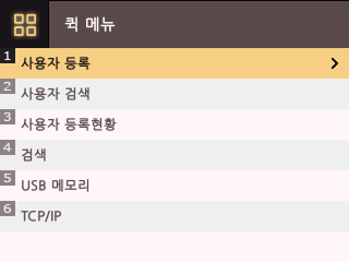 관리자가 지정되어 있지 않을 경우 을 길게 누른 뒤 손을 떼면 퀵 메뉴 화면이 나타납니다.