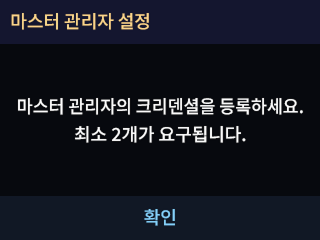 두 종류 이상의 크리덴셜을 등록한 후, OK를 누르면 마스터 관리자 등록이 완료됩니다.