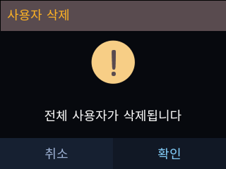 전체 사용자를 삭제하려면 OK를 누르세요. 이전 화면으로 돌아가려면 ESC를 누르세요.