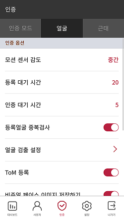 보안 등급: 1:N 인증을 위한 보안 등급을 설정할 수 있습니다.