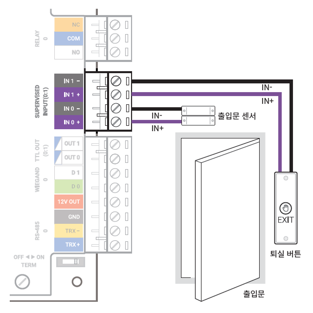 출입문 센서 및 퇴실 버튼 연결