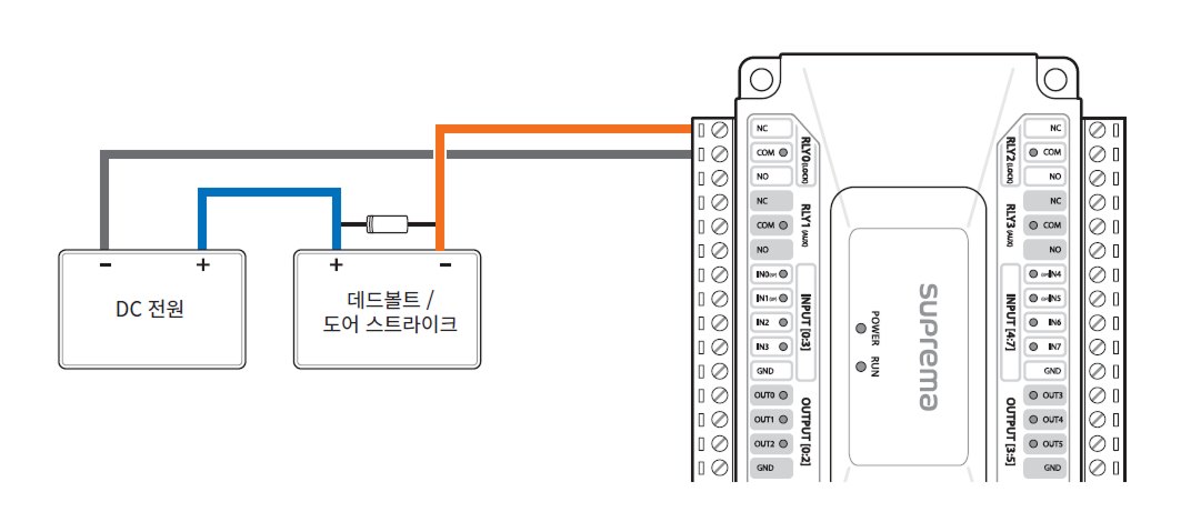 - 출입 통제 장치와 제품에 연결하는 전원은 반드시 분리하여 사용하세요.