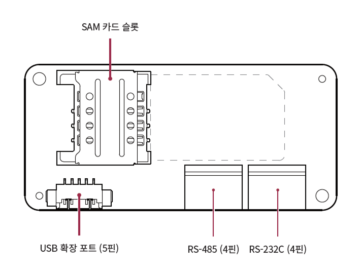 SAM 카드 슬롯: SAM (Secure Access Module) 카드를 사용할 수 있습니다.