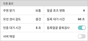 보안 등급: 1:N 인증을 위한 보안 등급을 설정할 수 있습니다.