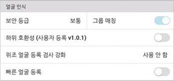 인증을 누른 뒤 얼굴 인식에서 원하는 항목을 변경하세요.