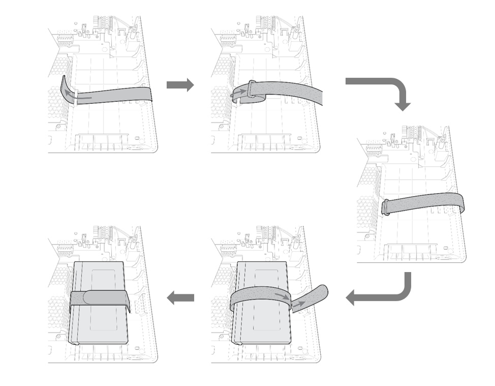 배터리 벨크로 스트랩을 함체에 끼운 뒤 배터리를 고정하세요.