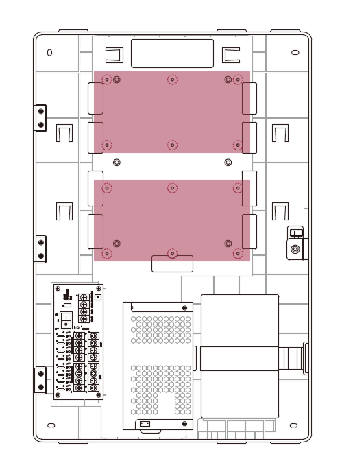 물리적·전기적 보호를 위해 제품을 함체(ENCR-10) 내부에 설치할 수 있습니다. 함체에는 전원 상태 LED 보드, 전원 분배 보드, 전원 공급 장치, 탬퍼가 포함되어 있습니다. 함체는 별매품입니다.