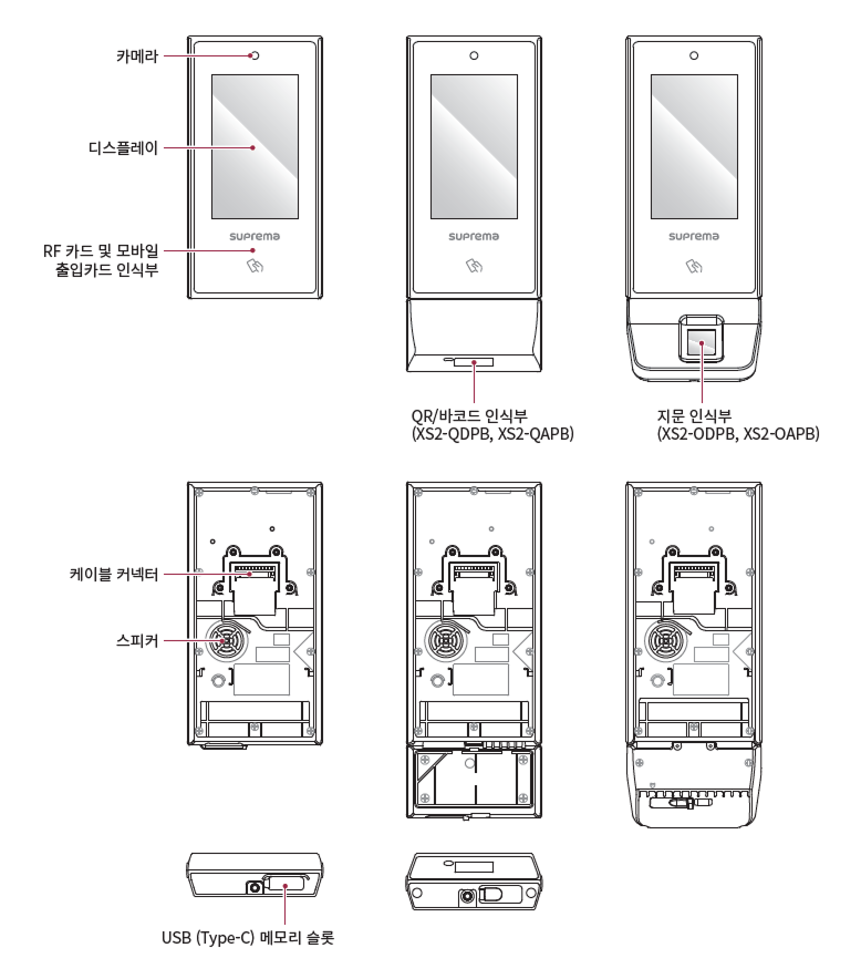 QR/바코드 인식부: XS2-QDPB, XS2-QAPB 출입을 위해 QR/바코드를 인식시키는 부분입니다.