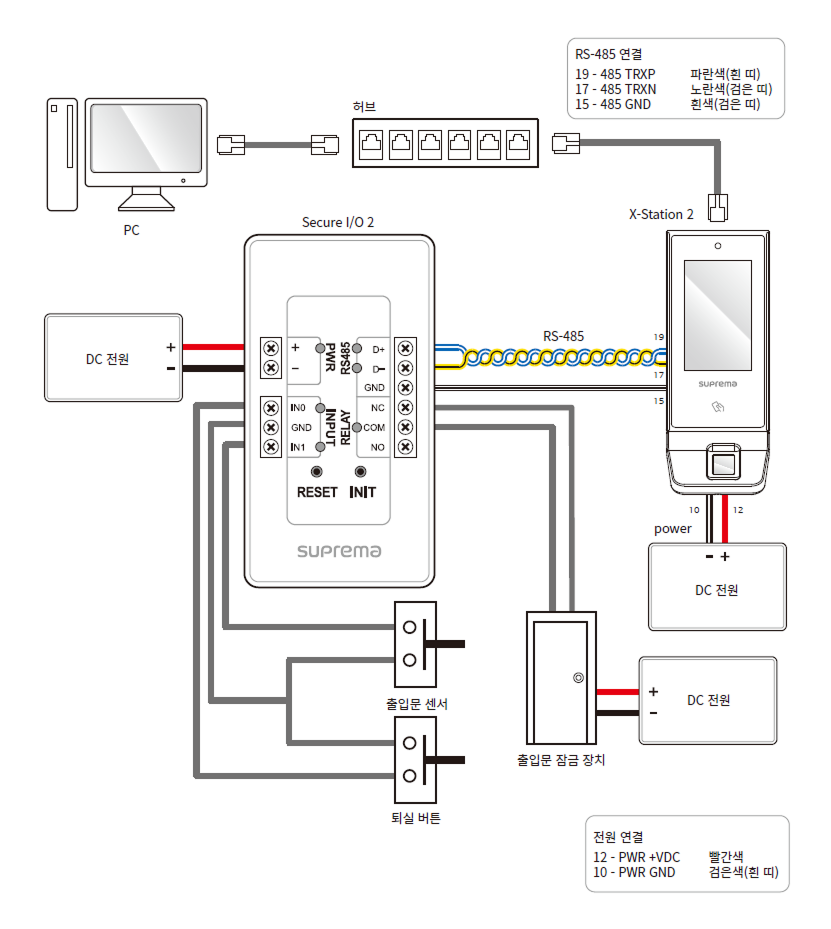 - Secure I/O 2, 전기정(전기식 잠금장치), 제품은 반드시 개별 전원을 사용하세요. 전원을 함께 연결하여 사용하면 장치가 오작동할 수 있습니다.