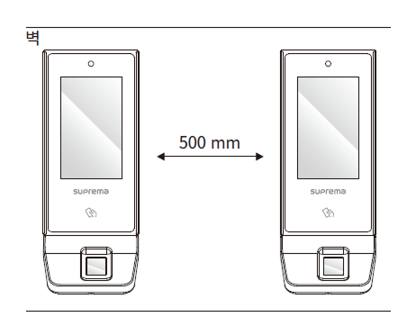 - 모바일 출입카드를 사용할 경우 BLE 신호 간섭을 피하기 위해 장치 사이에 최소 1 m 이상의 거리를 두고 설치하세요.