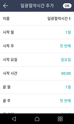 화면 보호기: 화면 보호기 사용 여부를 설정할 수 있습니다. 화면 보호기를 사용하면 장치를 사용하지 않을 때 화면 밝기를 줄여 불필요한 전력 소모를 줄일 수 있습니다.