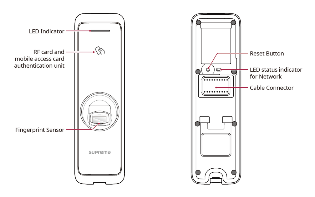 LED Indicator: Indicates the operational status of the device with the color of the LED.