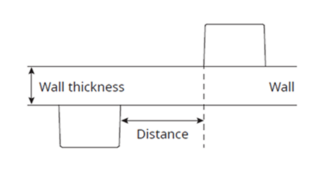 Wall thickness Distance 100 mm 270 mm 120 mm 250 mm 150 mm 170 mm