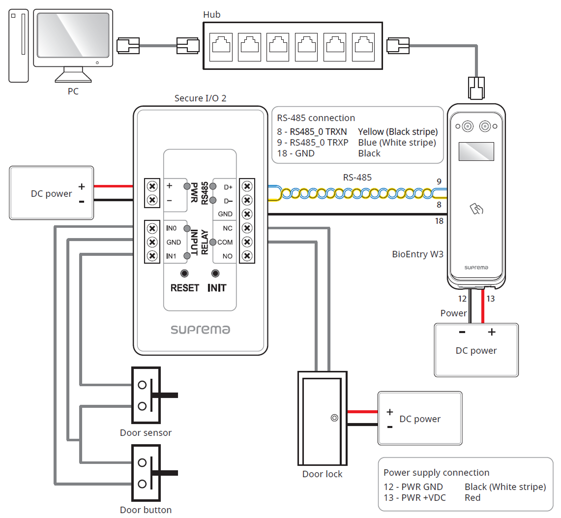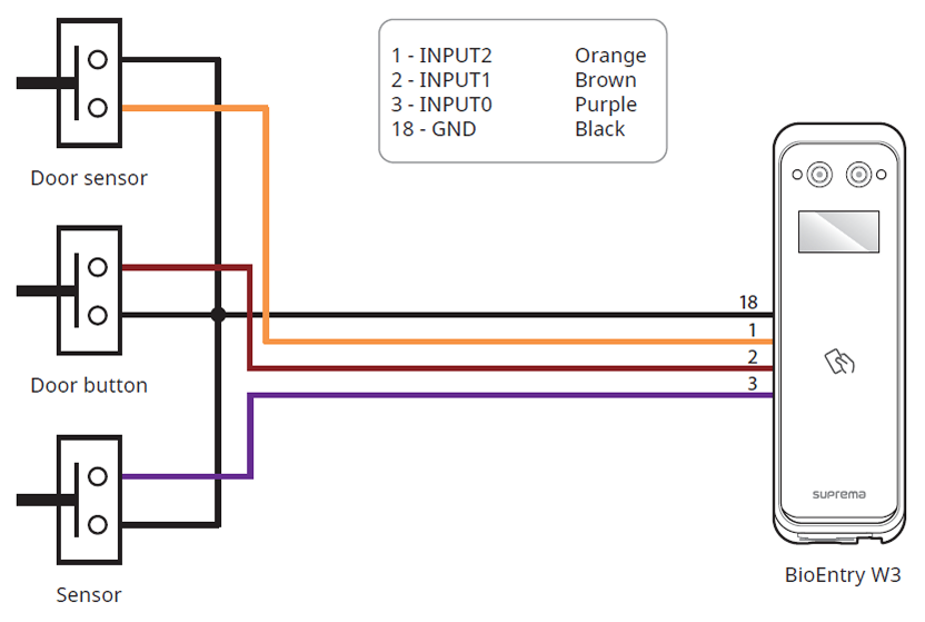The product can be connected to the door lock, door button, and door sensor directly without connecting a separate I/O device.