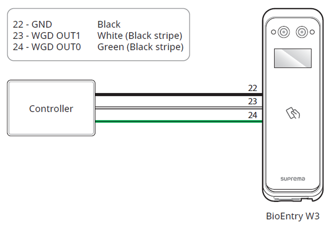 - The device can be used as a multi-door controller with the slave devices with the RS-485 cable. The slave devices are used as dummy readers and authentication is performed in the master device.