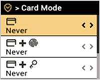 : This mode authenticates with a card followed by either fingerprint or PIN entry. -