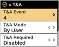 T&A Required: Require users to select a time and attendance event during authentication. Setting Enabled allows you to require selecting a time and attendance event when authenticating.