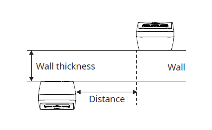 Wall thickness Distance 100 mm 350 mm 120 mm 350 mm 150 mm 300 mm