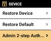 Devices with upgraded firmware do not provide Master Admin Setting; enhance device security by elevating full admin privileges through the Admin 2-step Authentication option.