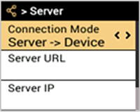 Connection Mode: Selecting Device → Server sends a direct connection signal to the server with the information entered on the device. Users can input Server URL, Server IP, and Server Port.