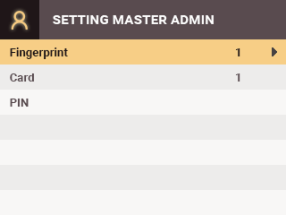 At least two different types of credentials must be enrolled to register Master Admin. Select and enroll two desired credentials.