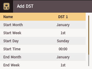 End Month / End Week / End Day / End Time: Set details of when daylight-saving time ends.