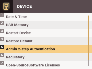 Devices with upgraded firmware do not provide Master Admin Setting; enhance device security by elevating full admin privileges through the Admin 2-step Authentication option.