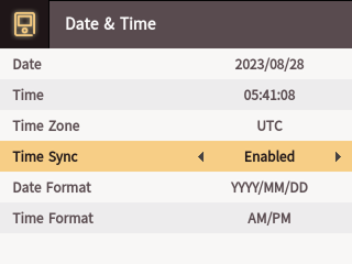 Date: You can check the current date. To modify it manually, disable Time Sync.