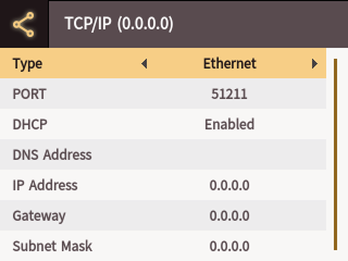DHCP: Set whether to use DHCP. If DHCP setting is disabled, the user can modify IP Address, Gateway, and Subnet Mask.