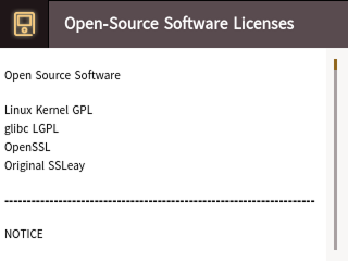 Select DEVICE → Open-Source Software Licenses and then press OK. You can check the license.