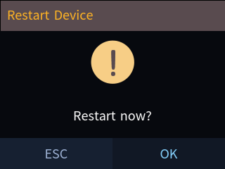 Press OK to restart the device. Press ESC to return to the previous screen.