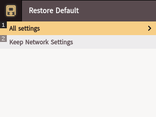 Keep Network Settings: Initializes all settings except for network settings. Press OK to initialize all settings except for network settings. Press ESC to return to the previous screen.