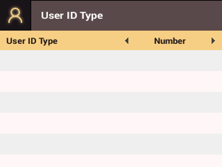 Select DEVICE → More Settings → User ID Type and then press OK.