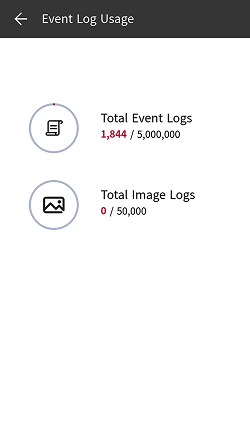 → in DASHBOARD. Check the device's event log and image log usage.