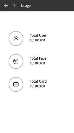 You can see the number of registered users, faces, and cards at a glance.