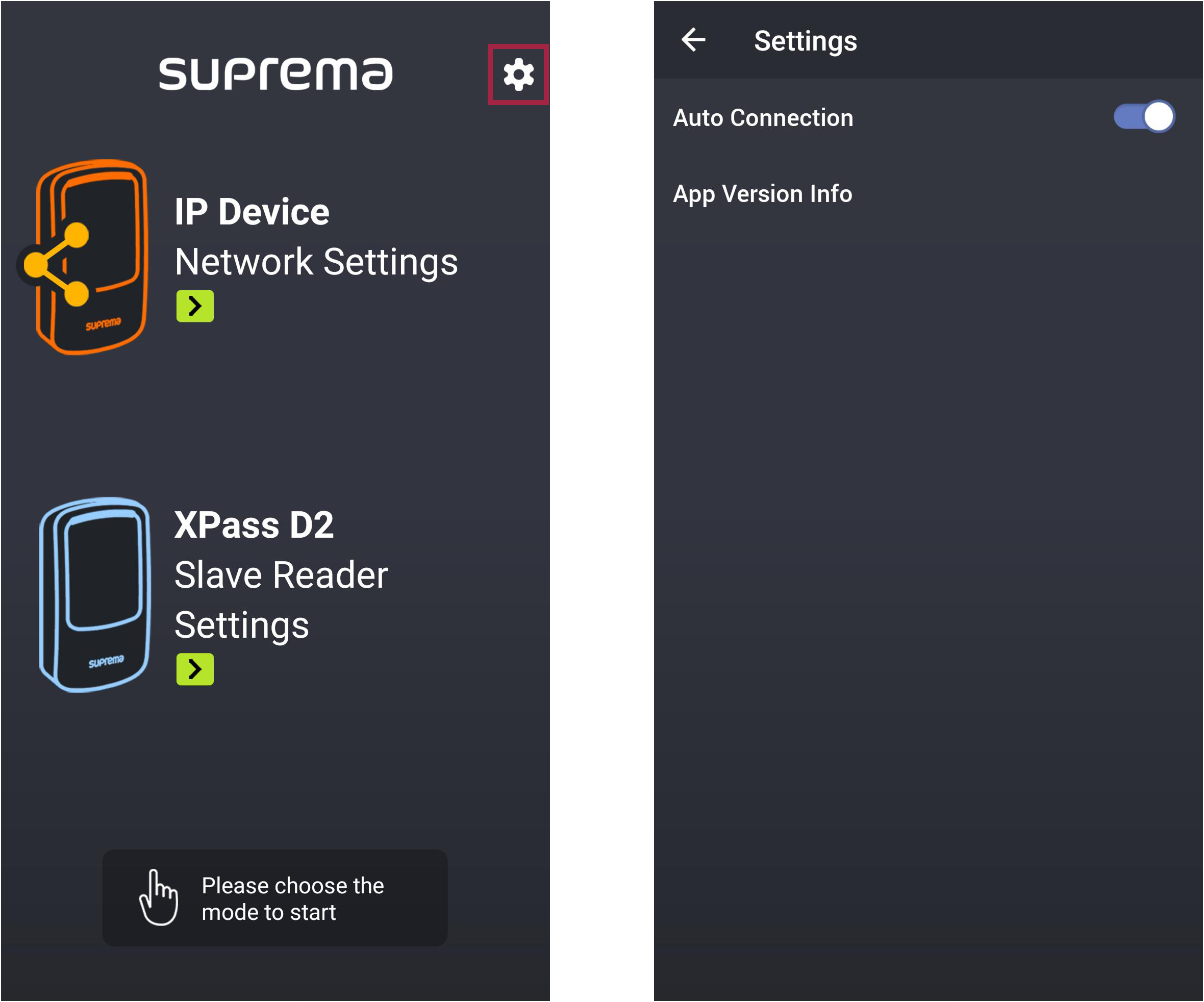 Run the Suprema Device Manager on your mobile device.