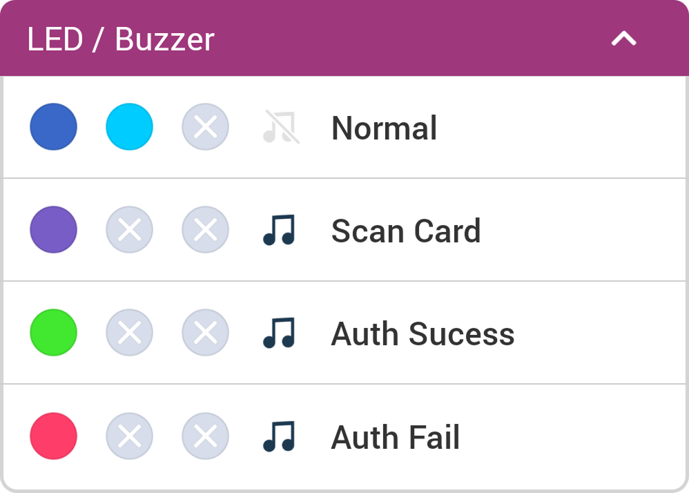 Auth Sucess: You can set the color displayed on the device LED and the number of times the buzzer sound plays upon successful authentication.
