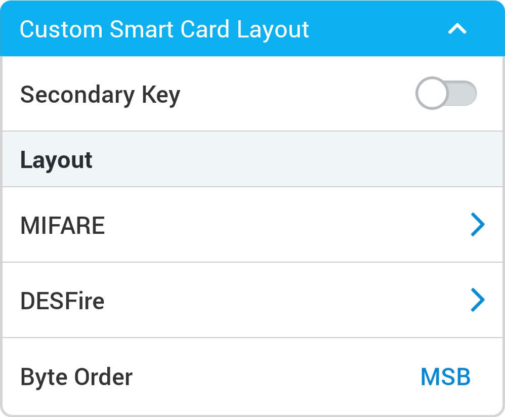 DESFire Advanced: You can use DESFire cards issued by third parties. Only DESCire can be configured.