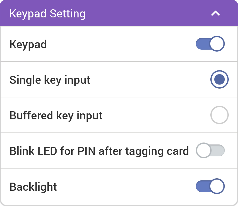 Keypad: You can set whether to use the keypad. When the keypad is activated, you can authenticate by entering the card ID using the keypad.