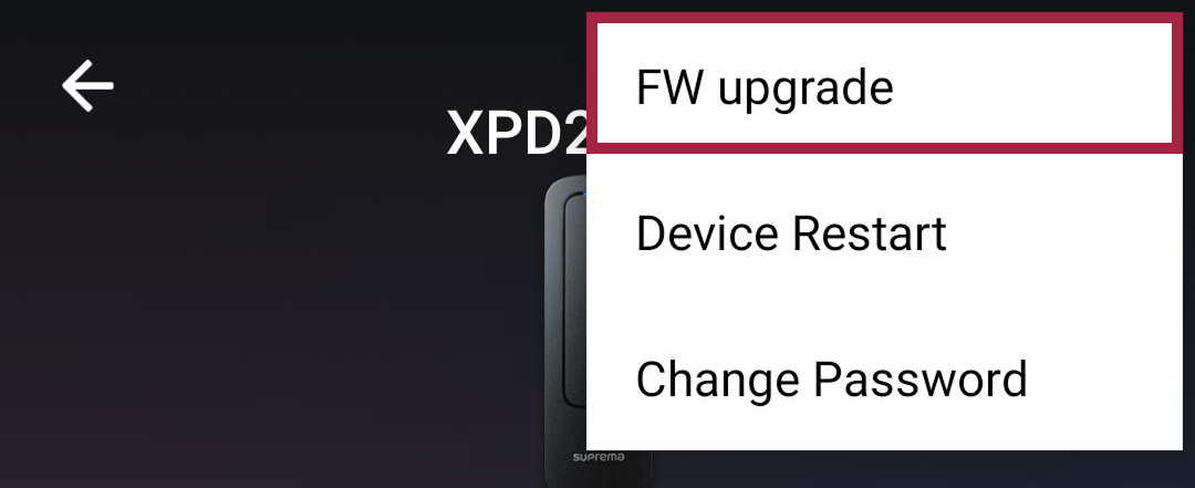 To upgrade the firmware, you need to download the firmware file to your mobile device. The latest firmware can be downloaded from the Suprema Download Center.