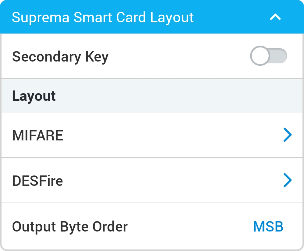 Suprema Smart Card Layout: You can select the types of smart cards issued by Suprema.