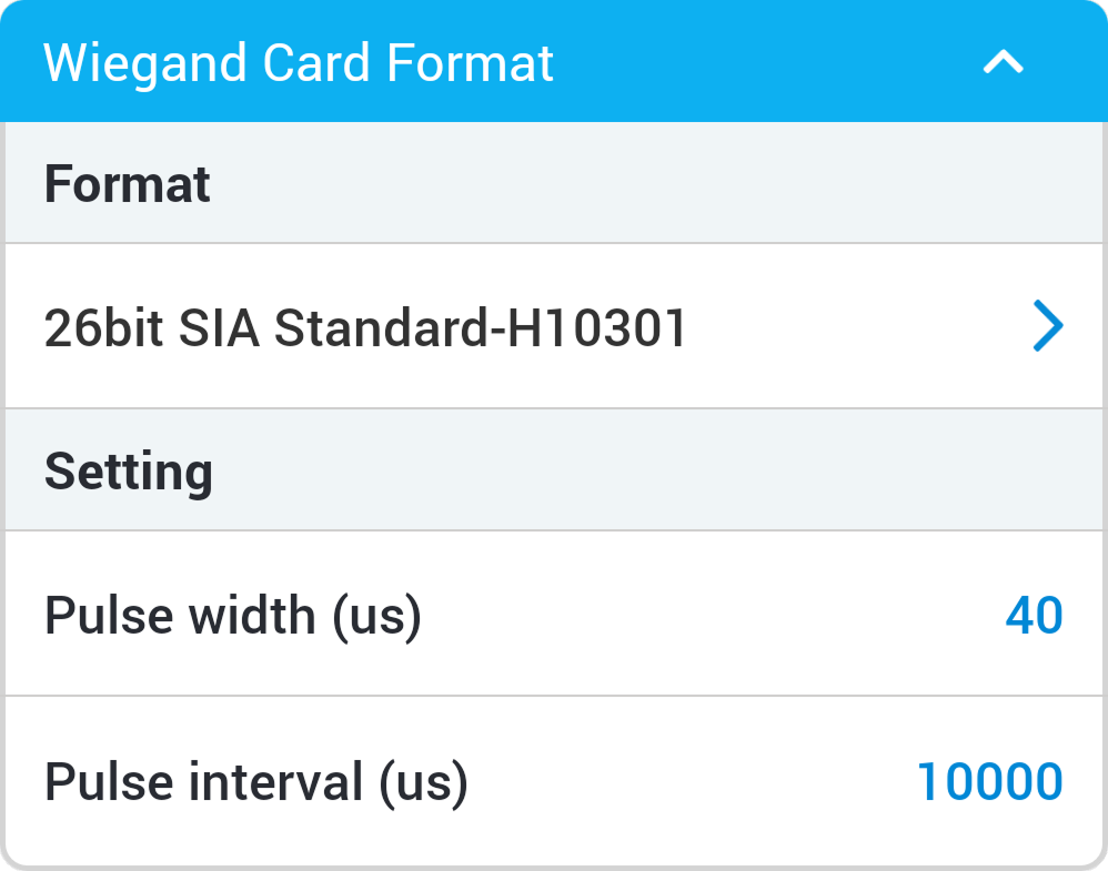 Pulse width (μs): You can set the pulse width of the Wiegand signal.