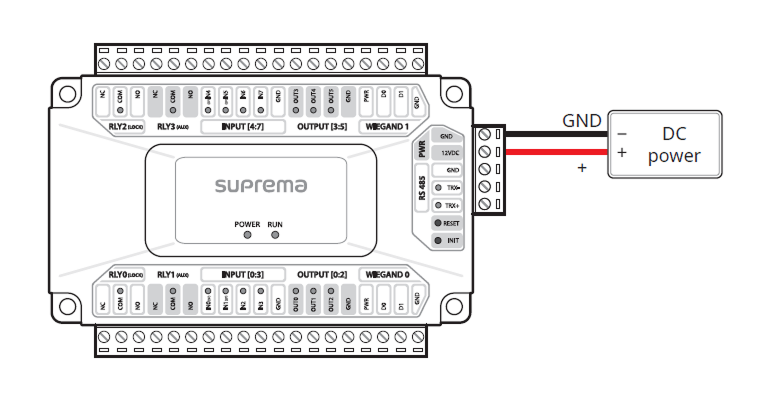 - Use a separate power supply for Secure I/O 2, the electric lock, and the product respectively. If connecting and using the power supply to these devices together, the devices may malfunction.